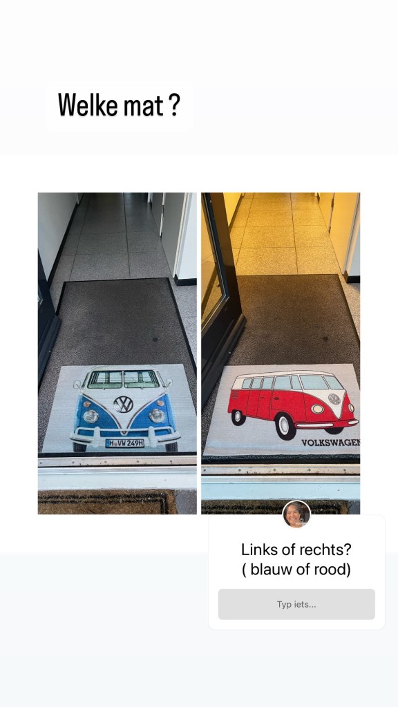 Vandaag deze quote en vooral omdat er een VW bus op staat. Ik had van de week twee matten gekocht met Volkswagen busjes erop. Waren in de aanbieding bij de Aldi en ik kon niet kiezen en voor de prijs hoefde ik ze niet te laten liggen. Dus op internet gevraagd om jullie mening: Blauw of Rood?
