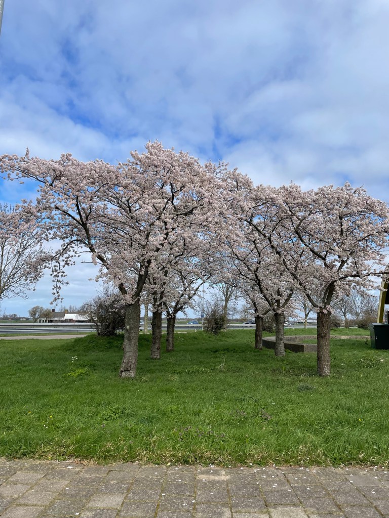Zaterdag waren we al vroeg in Scheveningen om onze vriendin Gerrie mee te helpen met verhuizen. Eerst van alles ingepakt en toen onze auto vol geladen en naar Franeker vertrokken. Gelukkig was het mooi weer en toen we onze auto moesten opladen zag ik deze mooie bloesem bomen.