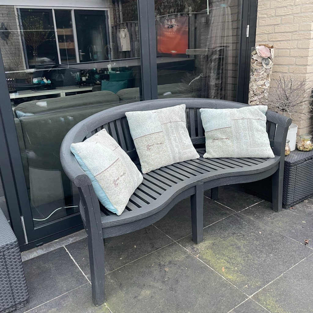 Ook de bank is weer gepoetst dus staat klaar om er een kopje thee in de ochtendzon te drinken.