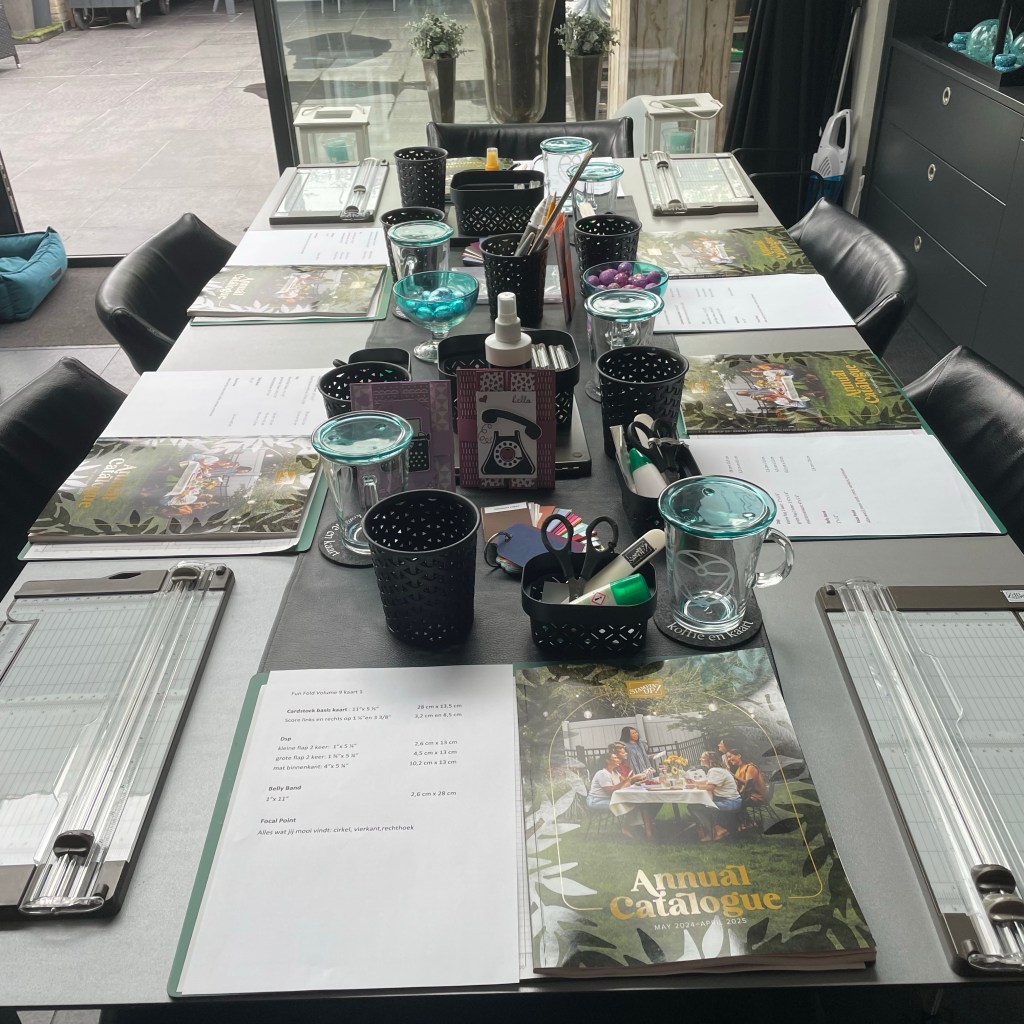 De nieuwe catalogus is binnen dus die mochten de dames meteen meenemen. Ik had een leuke funfold voorbereid en de dames gingen enthousiast aan de gang. De twee voorbeeld kaartjes had ik s’ochtends nog snel moeten maken. Want ik was een beetje druk geweest met het etentje.