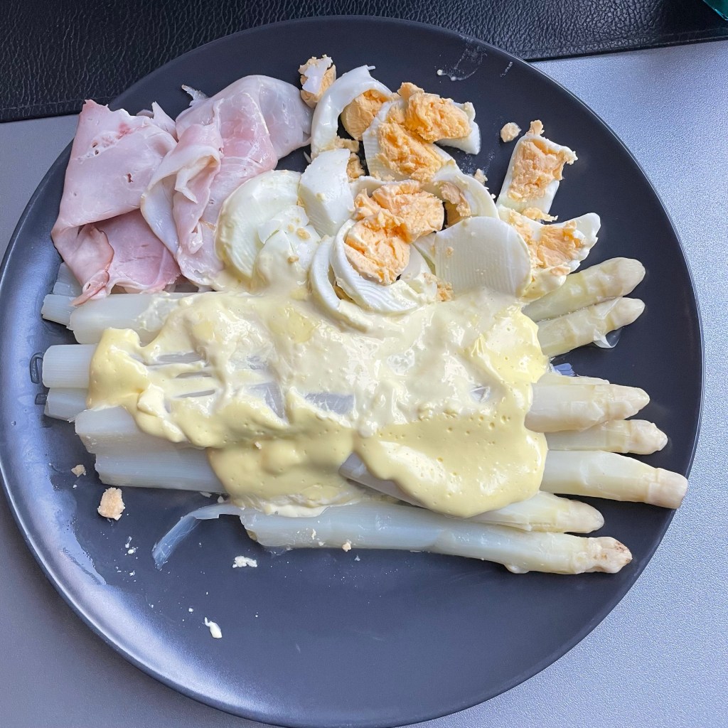 Vandaag voor het eerst weer asperges gegeten. Je houdt ervan of je haat het. Willem en ik vinden het heerlijk. Bijna 16 jaar geleden stond hij met een heel blij gezicht bij mijn voordeur en had als verrassing een kistje asperges bij. Eh leuk zei ik maar wat moet ik ermee: in een vaas zetten 😂. Gelukkig ging hij ze zelf klaarmaken en sinds die tijd eten we ieder jaar asperges.