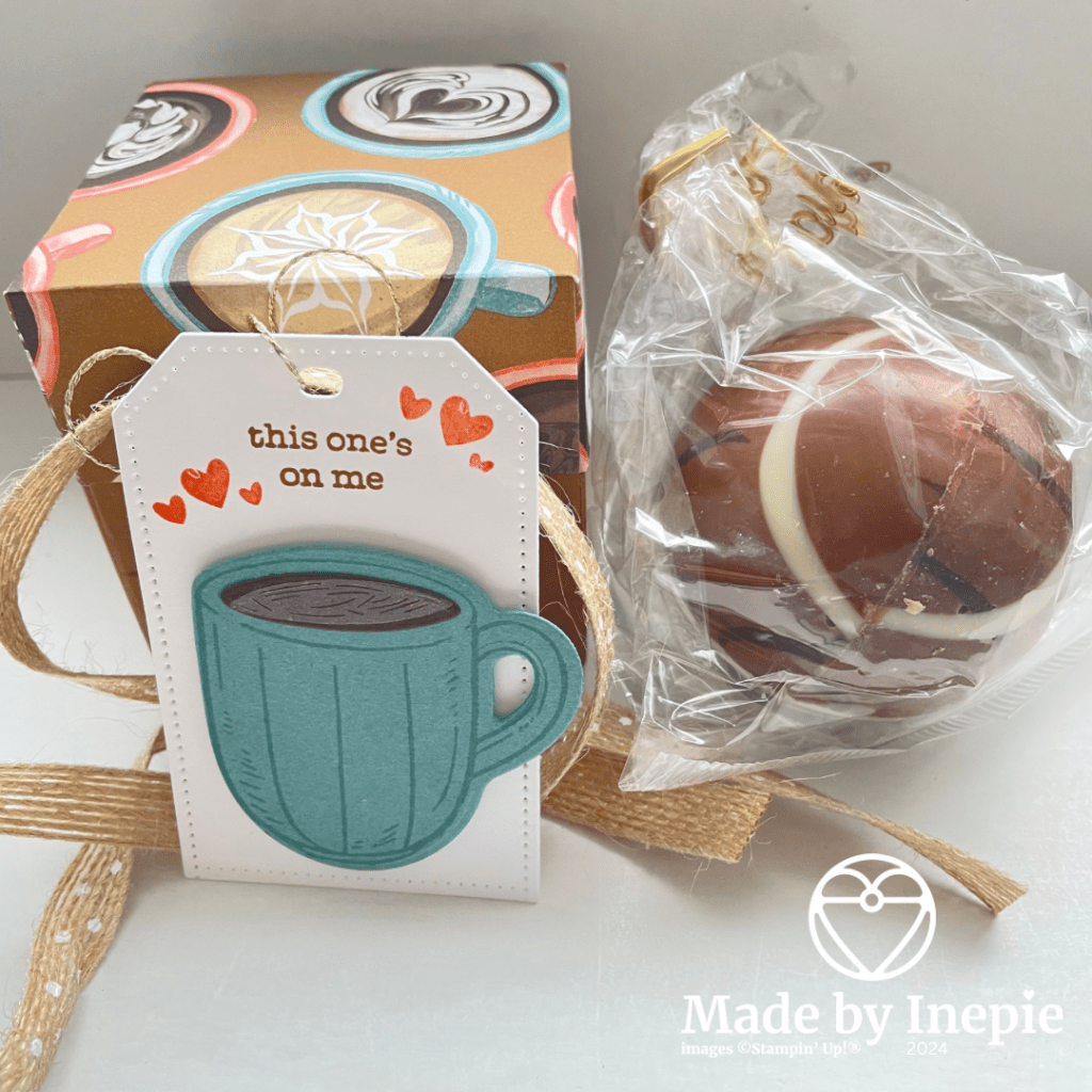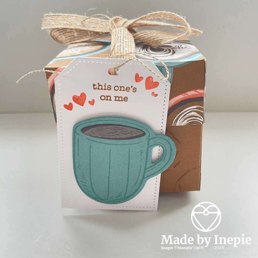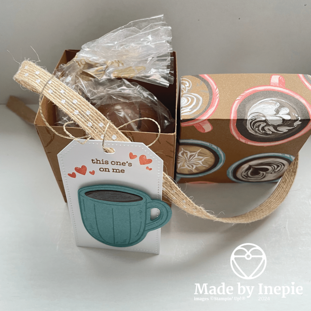 Superleuk cadeautje toch? En de tekst uit de stempelset Latte Love : this one’s on me, is zeer toepasselijk!