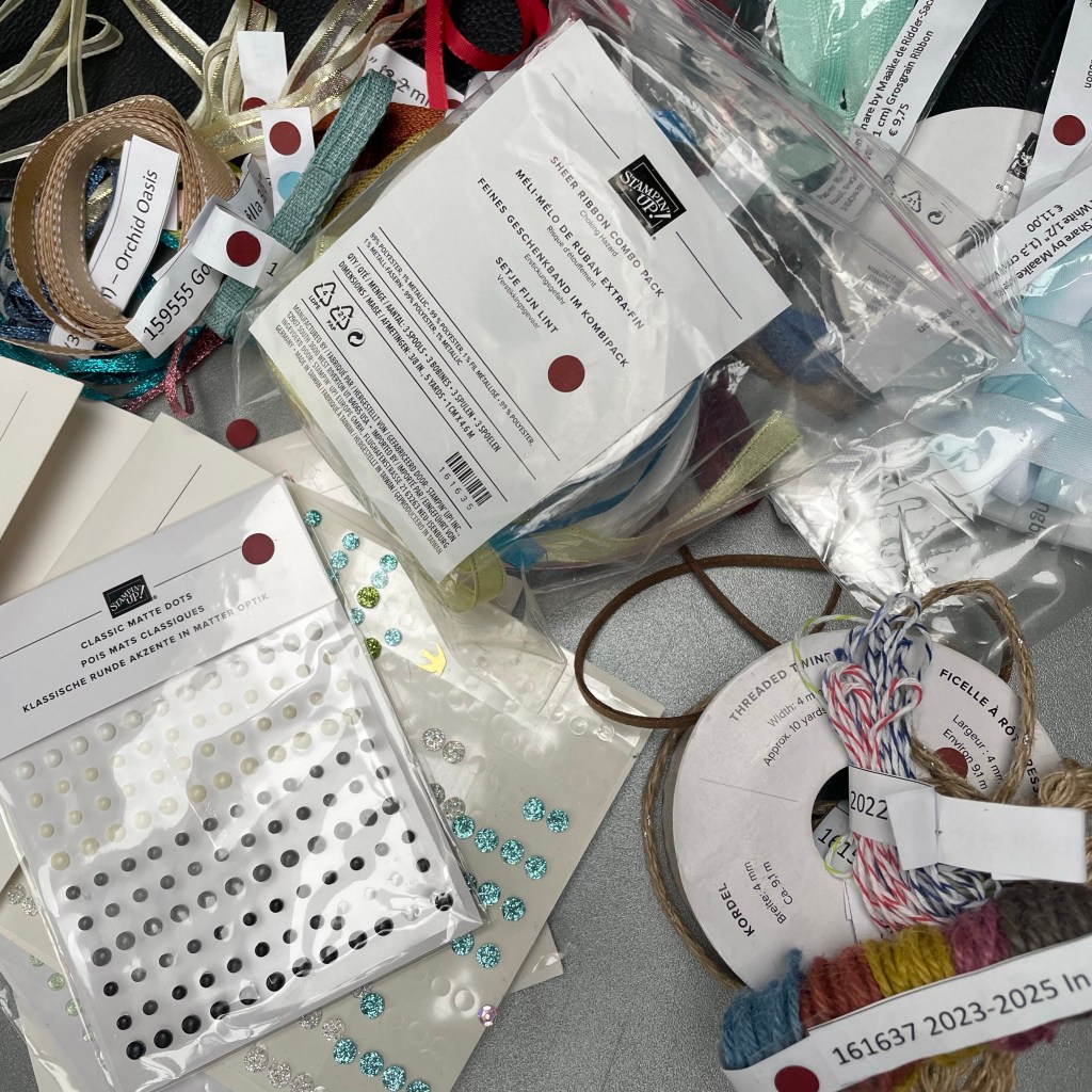 Vandaag alle linten en embellishments uitgezocht. Wat mee gaat of wat retired wordt. Ik zag dat ik best nog veel lint overhad dus ik heb besloten om dat nu veel te gebruiken.