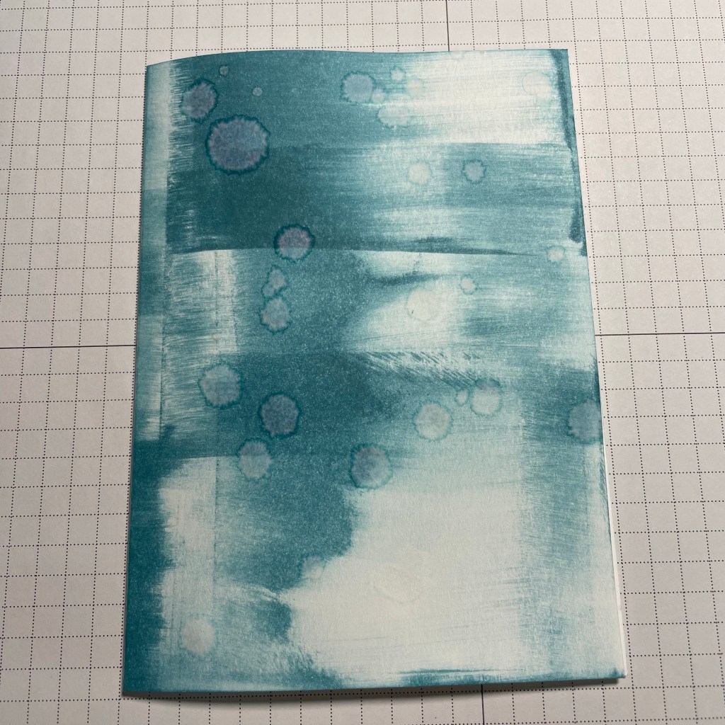 Met mijn Balmy Blue inktpad heb ik deze achtergrond gemaakt. Een basis kaart van Badic White kreeg kleur door de inktpad erover heen te trekken. Het hoeft niet perfect want er komen toch vissen op. Om het gevoel van water te vergroten heb ik met een waterpainter druppels water erop gedaan. Toen gedroogd met een stukje keukenpapier en tadah: mijn achtergrond was klaar.