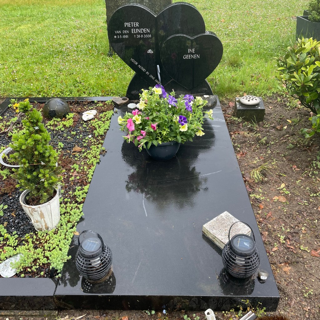 Vannacht kon ik niet slapen: het is vandaag Pieters verjaardag en heel veel mooie herinneringen kwamen terug. Maar ook de herinneringen aan zijn laatste verjaardag. Hij werd pas 45, maar we wisten dat dit zijn laatste verjaardag zou zijn. Omdat onze kinderen zo jong waren wilden we alles zo normaal mogelijk door laten gaan. Als traditie hadden wij altijd dat de jarige bij ons in bed mocht en de rest verzamelde in de gang en kwamen zingend de kamer binnen. Nog nooit zo het lied Lang zal je leven, verwenst. Ik kreeg het niet voor elkaar om dat te zingen ( zonder te huilen) dus zongen we Happy Birthday to you! Dus ja vannacht weer wat tranen gelaten. Het ene jaar gaat beter dan het andere en dit was weer zo’n lastige.