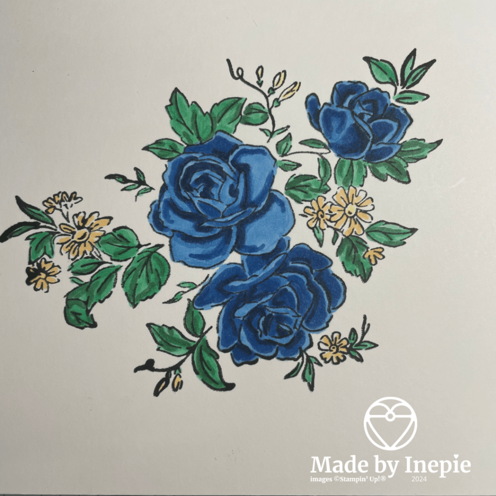 Terug naar het kaartje. Ik had stroken cardstock over en heb deze op mijn glasmat gelegd ( binnenkort bestelbaar) zodat ik precies wist hoe breed ze moesten worden. En deze toen met twee dunne stroken cardstock aan mijn basis kaart bevestigd. Zo krijg je een tuinhek idee. De Layers of Beauty heb ik met de Decorative Masks gemaakt. Ik ben nu bezig met een inkleur workshop van Mitosucrafts. Om beter te leren kleuren met de Stampin Blends en water color pencils. Super leuk om te doen. Mijn vriend Jay is echt een pro. En ik moet zeggen ik ben erg trots op mijn eind resultaat: