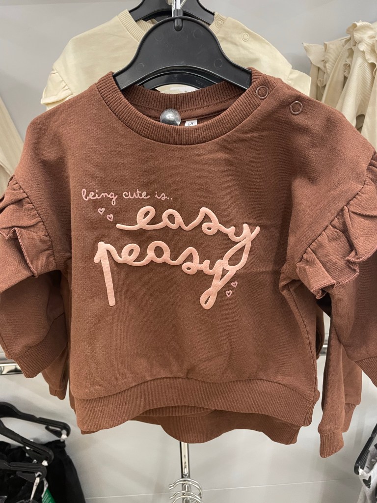 Ik zag dit baby shirt hangen en moest meteen vreselijk lachen. Ik heb echt getwijfeld maar het toch niet gekocht. Ik heb met mijzelf afgesproken dat ik pas los mag gaan als de kleindochter geboren is. Want er is zoveel leuks te koop! Maar ze kunnen het maar heel even aan en dan is het beter als je de maat weet en wat voor weer het is. Dadelijk komen Gijs en Michael, fijn om even bij te kletsen en te knuffelen. Dus fijne avond, liefs Ine