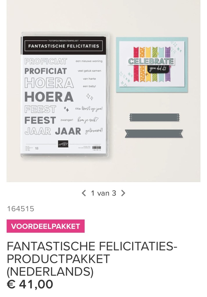 De tekst Gefeliciteerd komt uit de Nederlandse stempelset Fantastische Felicitaties die je als bundel kunt kopen met 2 kleine stansen (164515).