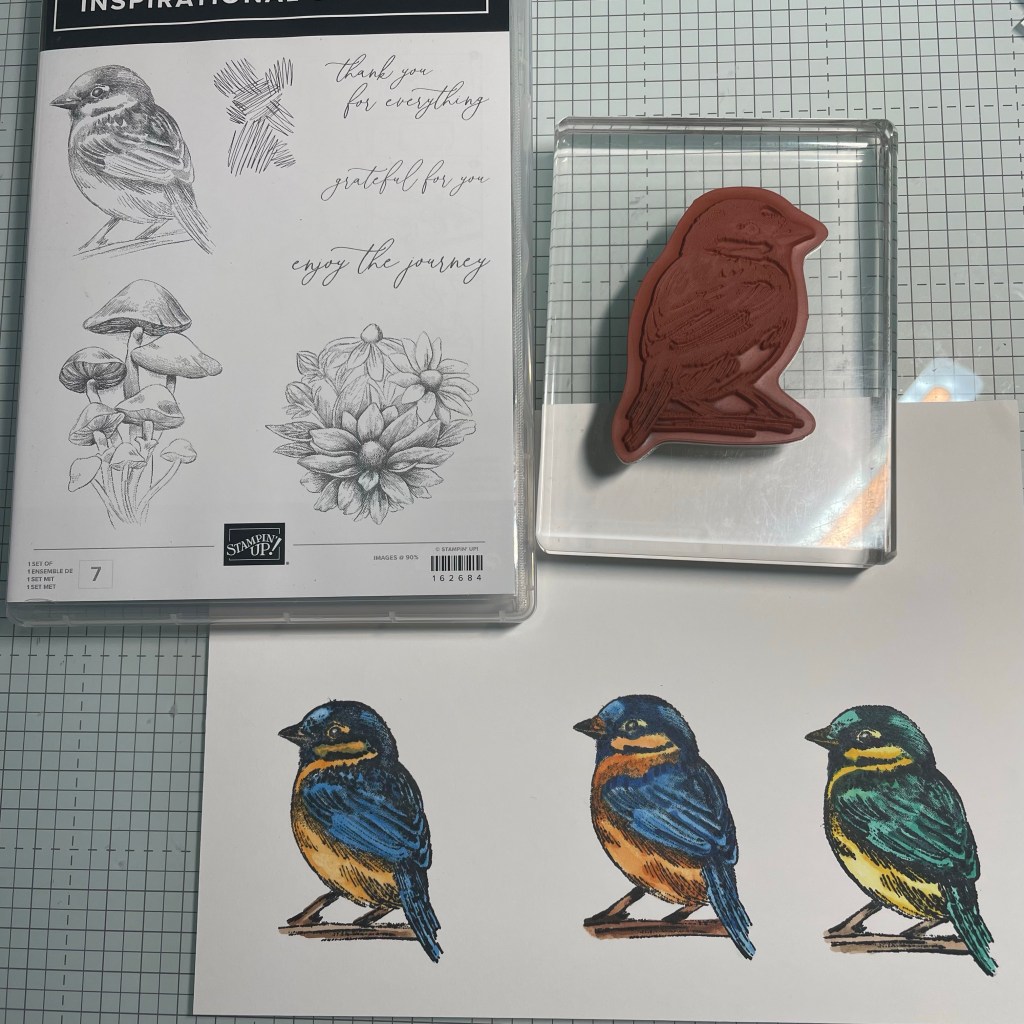 Deze kleuren combinatie heb ik zelf bij elkaar gezocht. Natuurlijk moest er Summer Splash bij zitten mijn nieuwe favoriete kleur. En Lemon Lolly en Daffodil Delight en Pool Party. Ik wil kijken of ik ook een Roodborstje kan maken.
