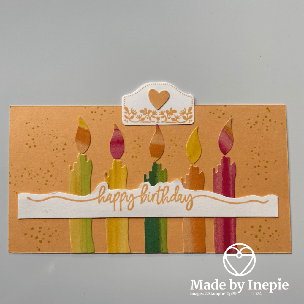 In de envelop verstopt zit dit leuke kaartje. Van Jay van Mitosucrafts leerde ik dat je met een stans deze leuke kaarsen kunt maken en de vlammen zijn stukjes die overblijven als je bladeren stanst. Ik sta nu op het station mijn blog te schrijven en weet zo gauw niet meer welke stansen ik gebruikt heb. Ik zou het in ieder geval zelf nooit bedacht hebben dus alle credits gaan naar Jay.