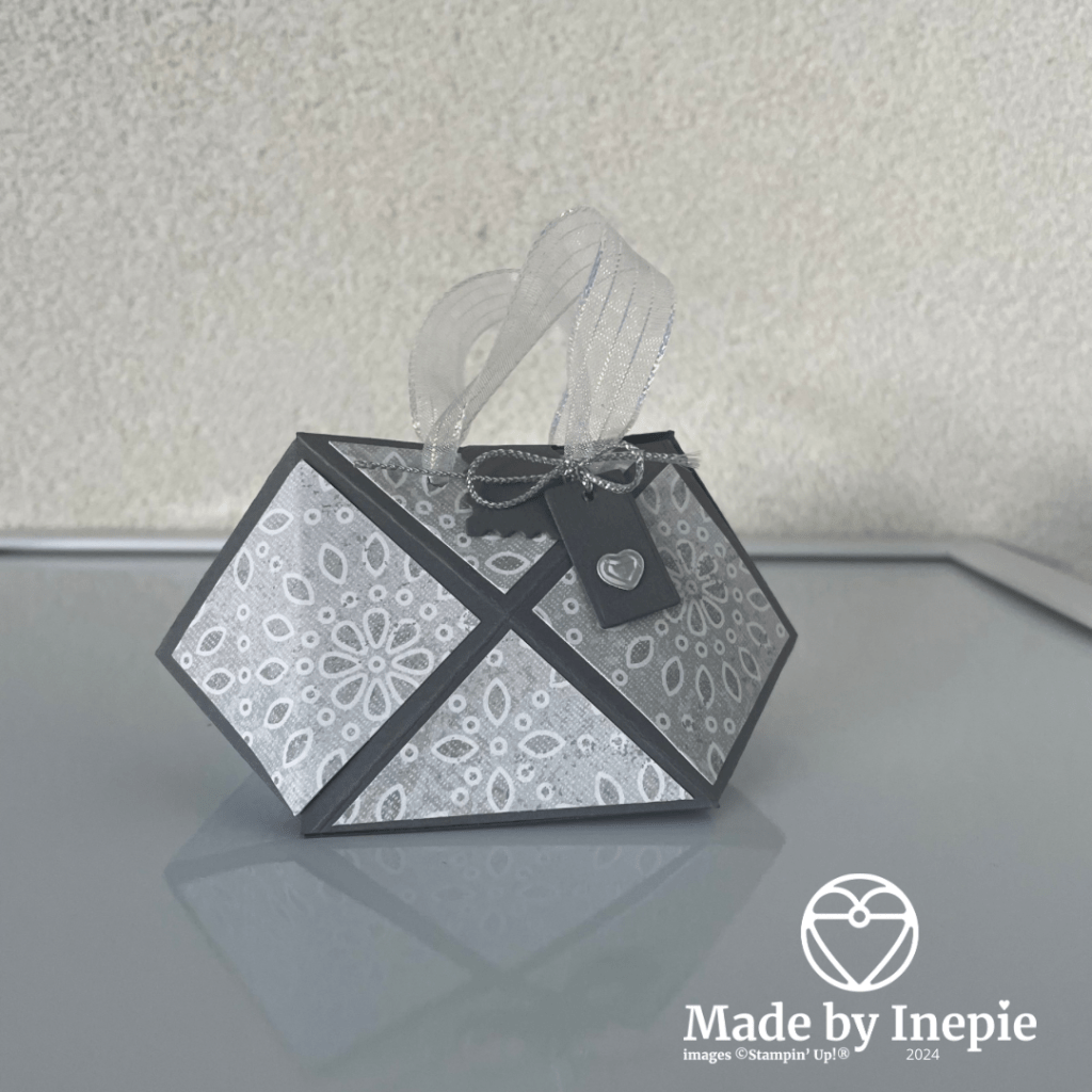Dit schattige tasje zag ik bij Karin van Stempelpunktchen. Een duitse Demo. Het is een project van 3 jaar geleden en ik had hem opgeslagen en vandaag gemaakt. Doe jij dat ook? Dingen opslaan van bv Youtube of Pinterest. En dan jaren later het pas maken hihi.