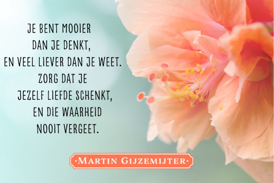 Vooral dat stuk van die eik die een wilg wordt en dus meebuigt in de wind. Zo prachtig! En doordat het waaide en ik de bomen zag bewegen herinnerde ik me dit liedje. Ik heb geen fijne jeugd gehad en veel ups maar zeker ook veel downs gekend in mijn leven. Maar ik sta nog steeds, ik buig maar breek niet. En ik ben er sterker uitgekomen, een mooi mens geworden. En daardoor herken ik dingen, dingen in mijn vriendinnen. Allemaal zo’n mooie mensen maar die zien niet hoe mooi ze zijn, hoe sterk ze zijn. Daarom stuurde ik ze dit gedicht van Martin Gijzemijter: