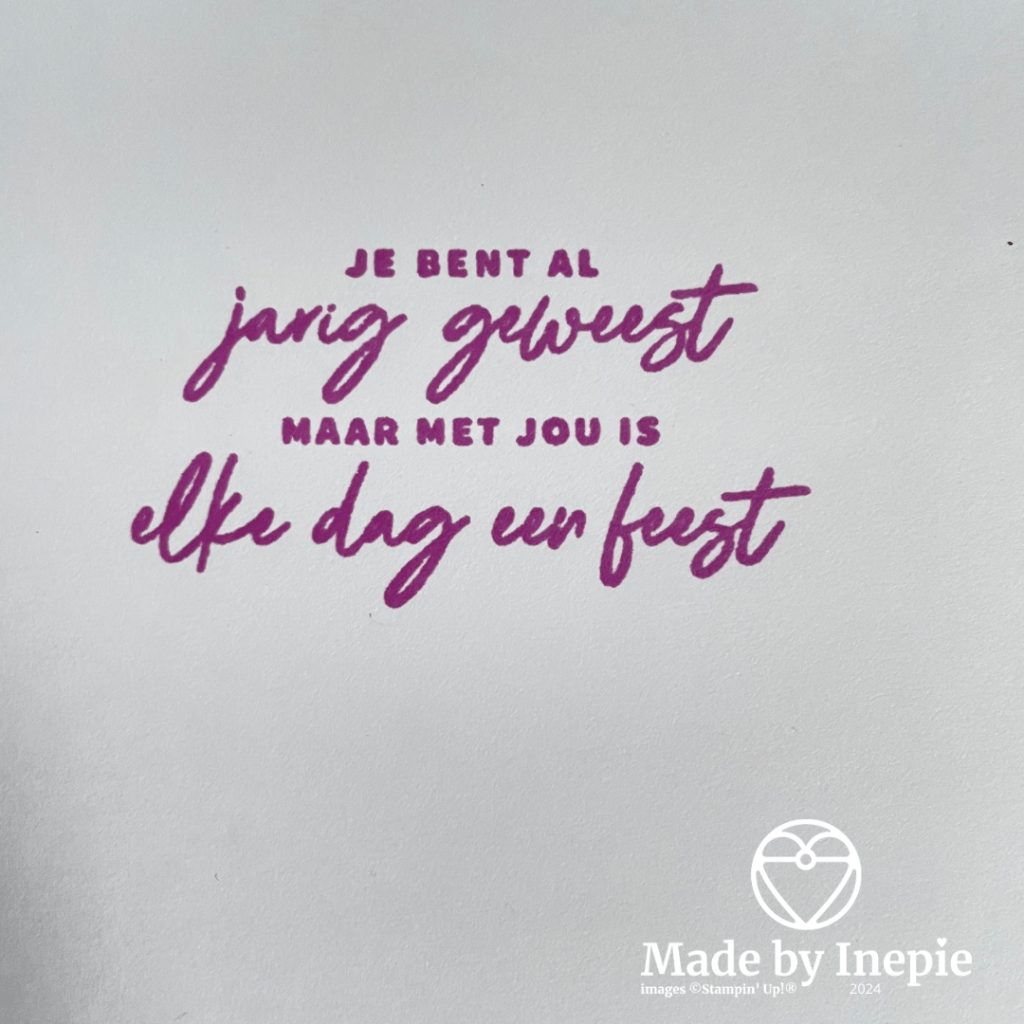 De tekst komt uit de Nederlandse stempelset Liefde en Lichtpuntjes ( 164496). De tekst aan de binnenkant van de kaart komt uit de Nederlandse stempelset Echt iets Bijzonders ( 161850).