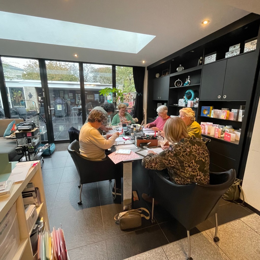 Maar misschien moeten we de naam veranderen in Kletsen en Kaart. Want ik drink geen koffie en nog een paar andere dames ook niet. En gekletst wordt er volop haha. Maar ook hard gewerkt en iedereen ging weer tevreden met mooie ( 1 dame zelfs met 2) kaarten naar huis.