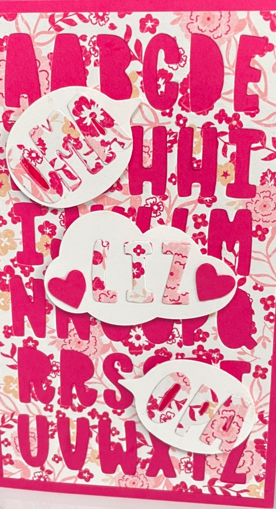 Dit oma en opa kaartje maakte ik voor een vriendin die in een maand tijd twee keer oma werd. Geweldig! Hun tweede kleindochter heet Liz en hoe leuk is het om een kaart te maken met haar naam erop. Ik maakte dit kaartje met de Mini alphabet dies.