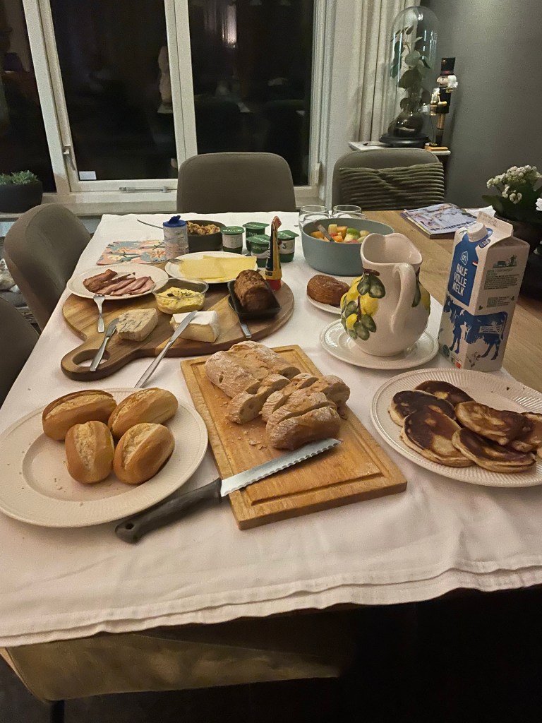 De lieverds hadden hun best gedaan en een geweldig ontbijt buffet klaar staan met American Pancakes en scrambled eggs.