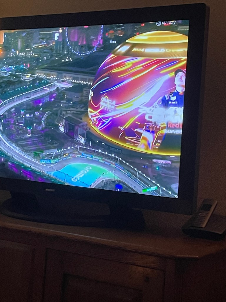 Dus lekker met ons ontbijt bordje op de bank genoten van de race en vooral het vierde kampioenschap van Max.
