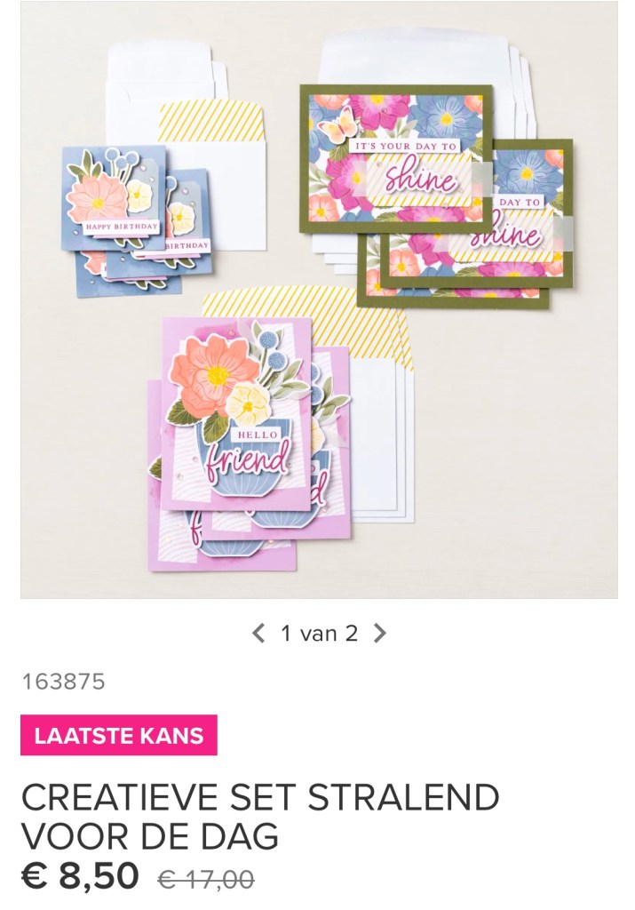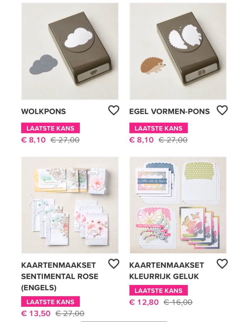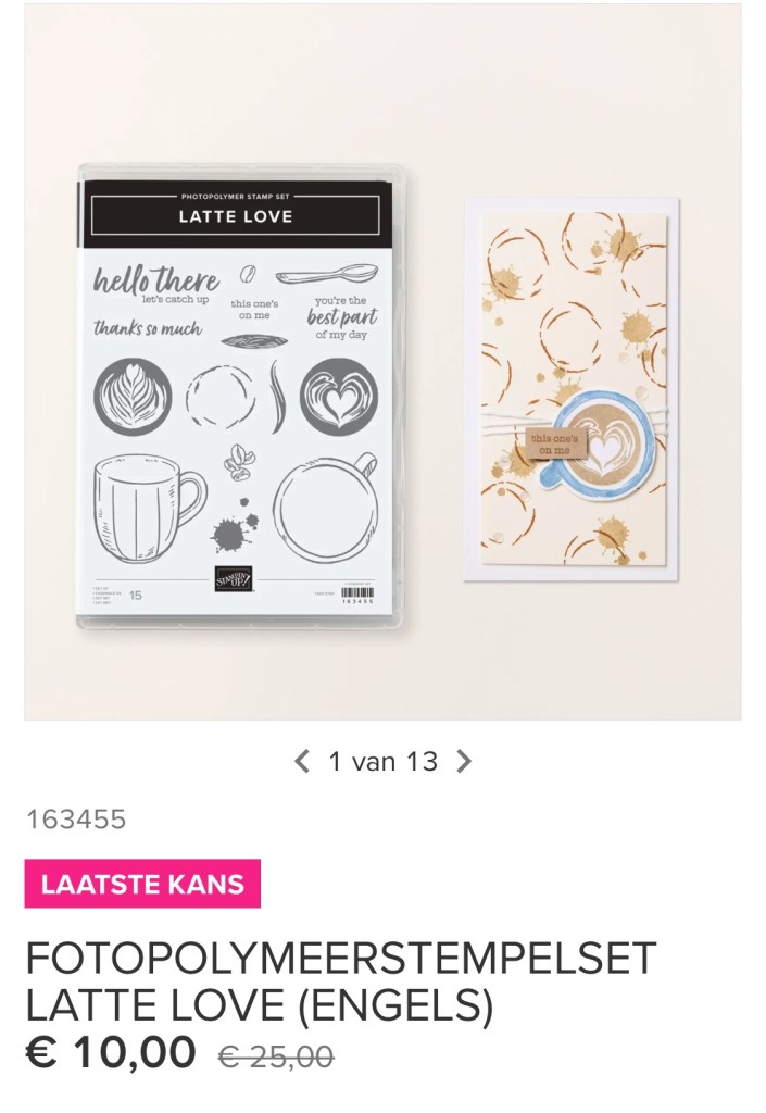 Gisteren begon een nieuwe actie van Stampin’up! De Laatste Kans lijst kwam Online. Hierop staan producten die als ze op zijn, niet meer bestelbaar zijn. Producten uit de mini catalogus, of uit de Online collectie.