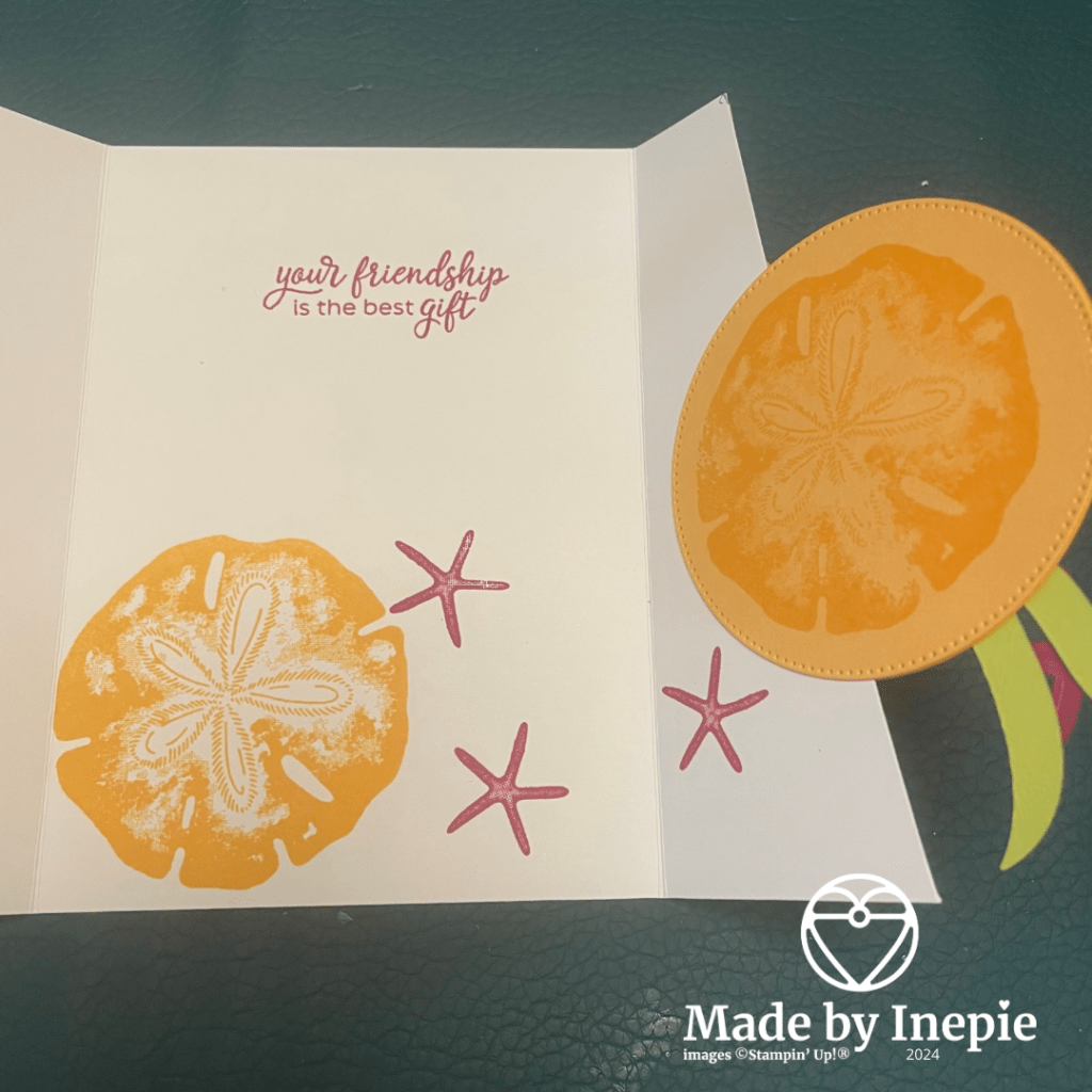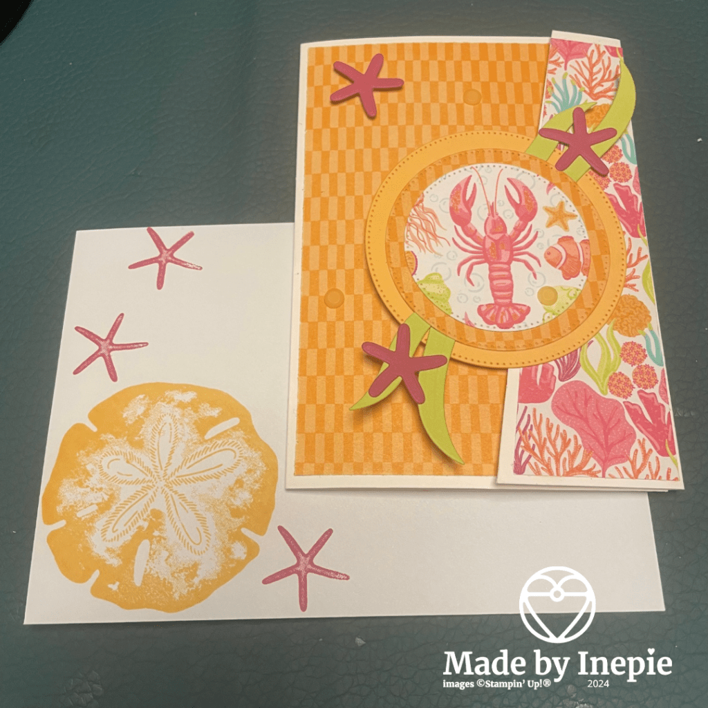 Ik gebruikte weer het mooie Friends of the Ocean Dsp en de bundel Seaside Wishes. En ik bestempelde ook de envelop. Zo heb je een mooi geheel.
