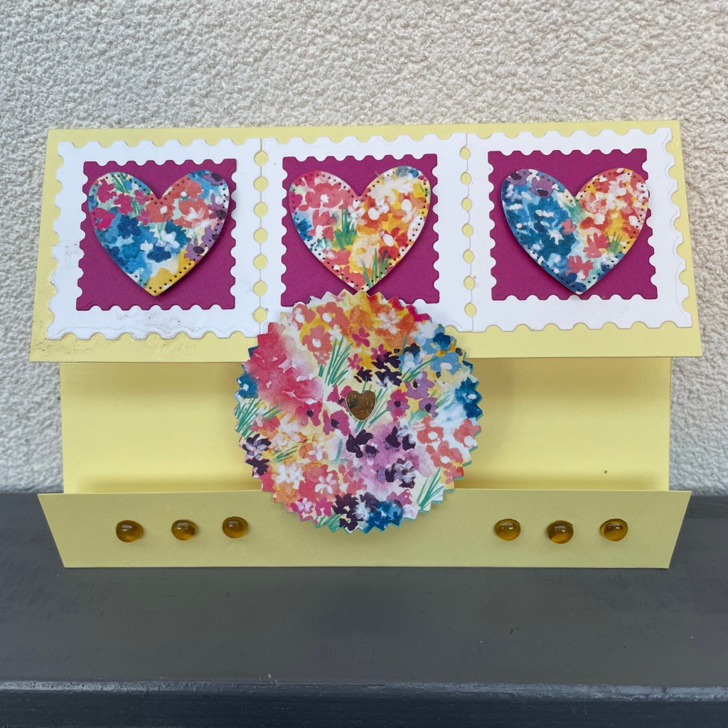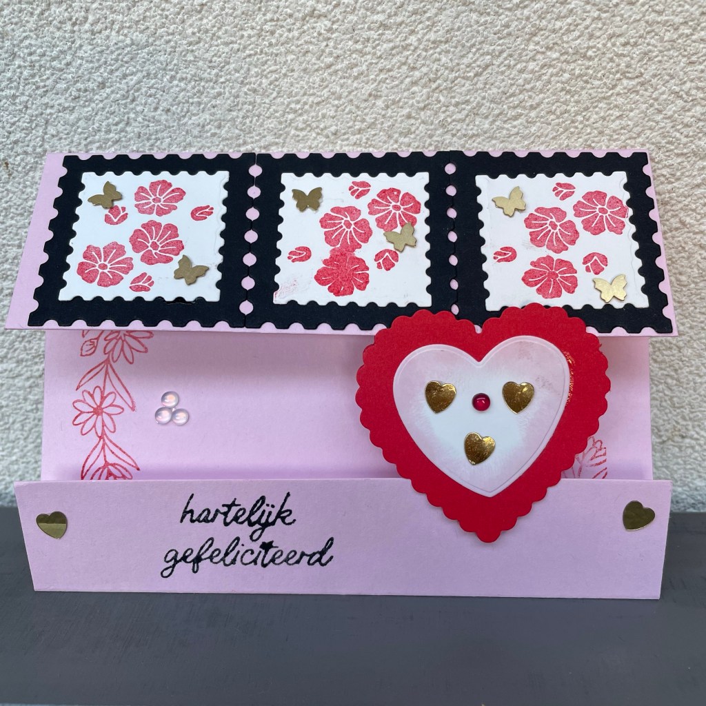 Vandaag was groep 1 weer aan de beurt. Vijf dames kwamen gezellig een kaart maken en 1 dame maakte er zelfs 2. Ondanks dat we begonnen met gezellig bijbuurten hadden alle dames de kaart af. Super trots op hun want het zijn echt mooie kaarten geworden. Het model had ik een keer op internet gezien en zelf uitgerekend en bedacht hoe het in elkaar zat. Mijn voorbeeld kaarten zie je hier morgen en woensdag, nog even wachten dus. Maar vandaag show ik de mooie kaarten van de Dames: