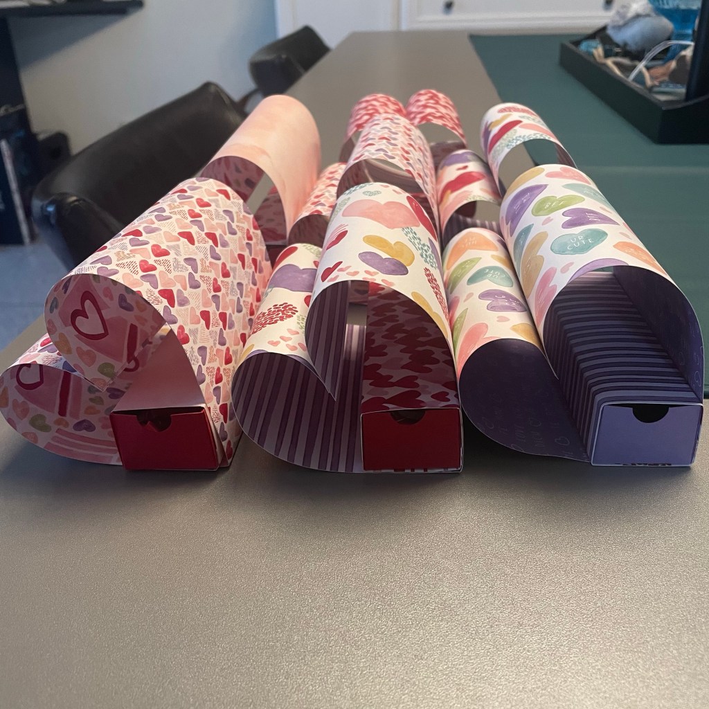 Op internet zag ik bij Sonja Mehl dit leuke doosje voorbijkomen. Dus de bijpassende chocolade besteld en deze doosjes gemaak. Ik gebruikte retired papier want zonde om dat niet te gebruiken.