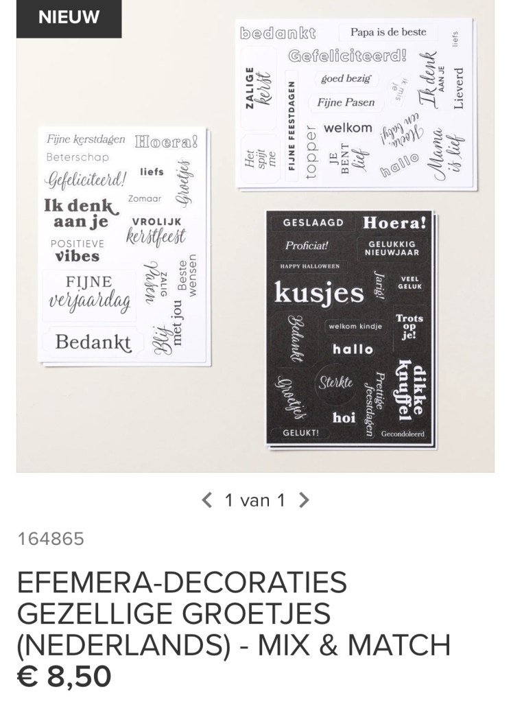 Ik heb de mooie Efemera-decoraties Gezellige Groetjes gebruikt voor de teksten. Daar heb ik nog wat kleine bloemetjes ongestempeld en ingekleurd met een Balmy Blue watercolor pencil.
