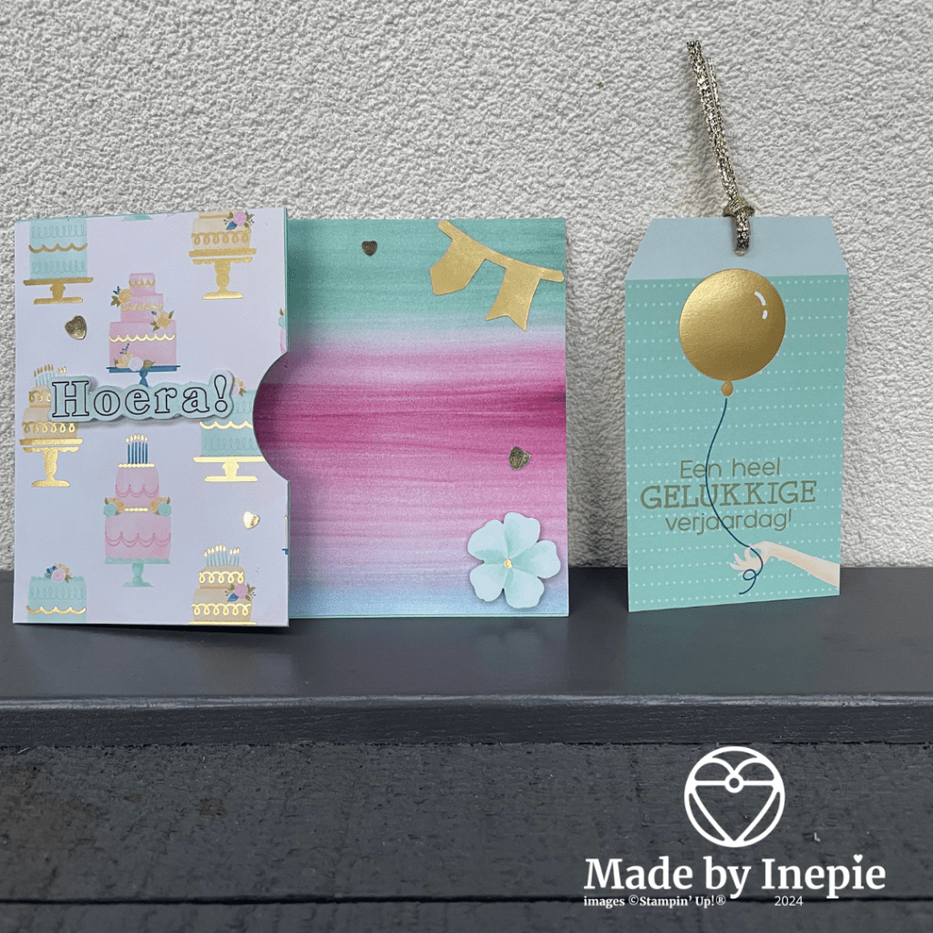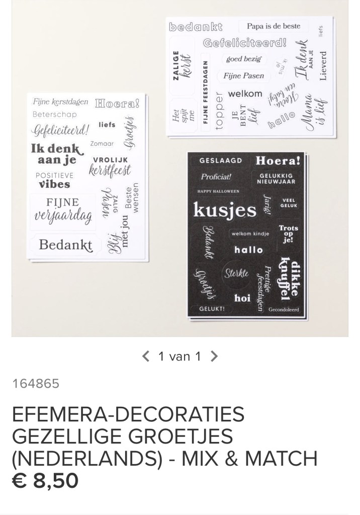 En ook ideaal is de hieronder geplaatste set: gezellige groetjes. Ik heb Hoera gebruikt en met een Blending Brush kleur aangebracht.