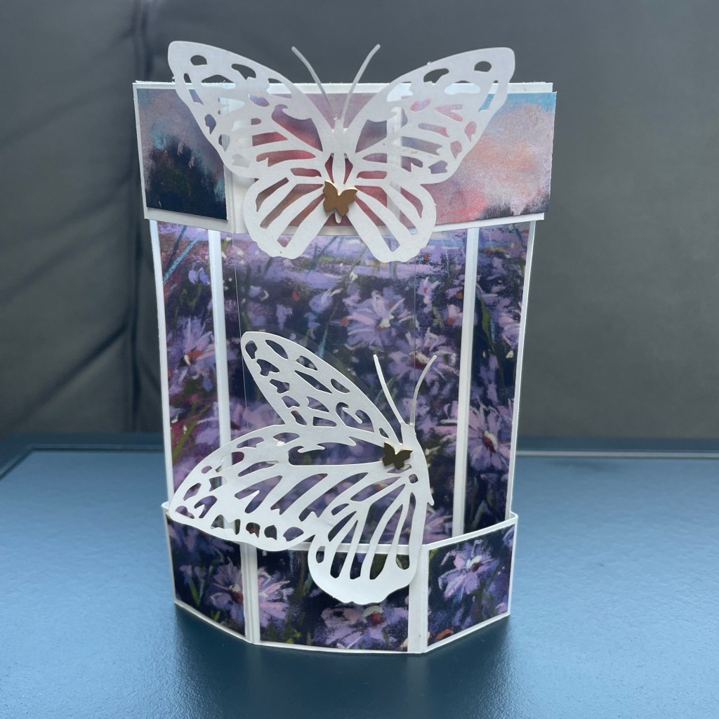 Vandaag was het weer Koffie en kaart. Gisteren na thuiskomst uit Bourtange ben ik meteen aan de slag gegaan. Dit Kaartmodel had ik al een keer gemaakt maar de beschrijving was in het engels en in inches. Dus tutorial geschreven en in cm’s. Kost wel wat tijd maar de dames vonden de kaart geweldig. Ze dachten eerst dat het moeilijk was maar ze kennen mij toch het is easypeasy! Het is voornamelijk veel snijwerk en weinig stempelen.