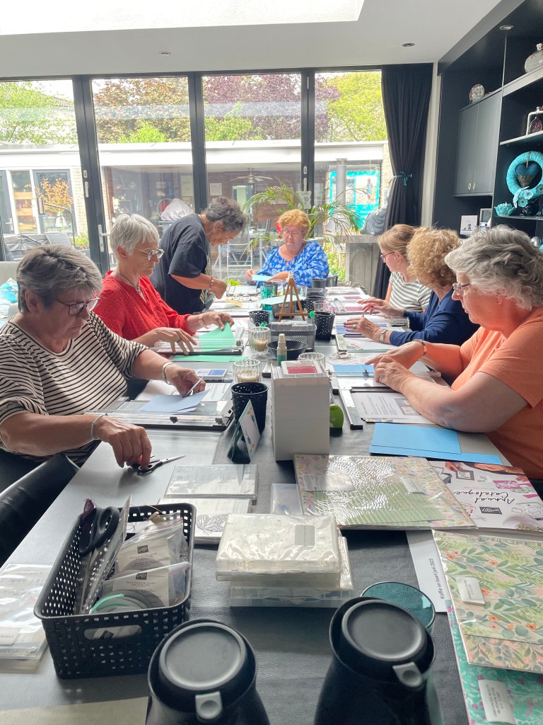 En de zeven dames hebben ook prachtige kaarten gemaakt. Omdat we met zoveel dames waren had ik speciaal het Wildflower Dsp klaargezet want daar zitten uitdrukbare elementen bij.