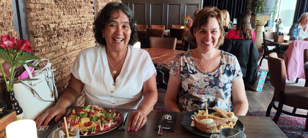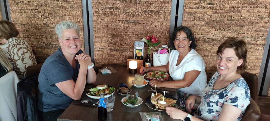 Ik had een date met twee lieve vriendinnen die ik helaas te weinig zie. Patricia en Monique, 2 zussen die ik dankzij Stampin’Up! heb leren kennen. Voor hun verjaardag had ik ze uitgenodigd om samen te lunchen en gezellig bij te kletsen. En als mini Teamdag: want Monique is mijn teamgenootje. En Patricia hoort er gewoon bij!