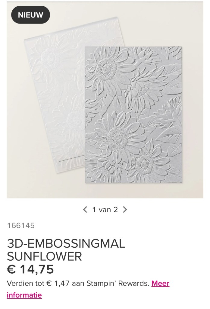 Ik ga ook even mijn Retired Bijzondere zonnebloemen bundel ( uit 2020) opzoeken want een 3D bloempje voorop lijkt me ook erg leuk. De stempelset kon ik zo pakken maar ik moet nog even de stansen erbij zoeken.