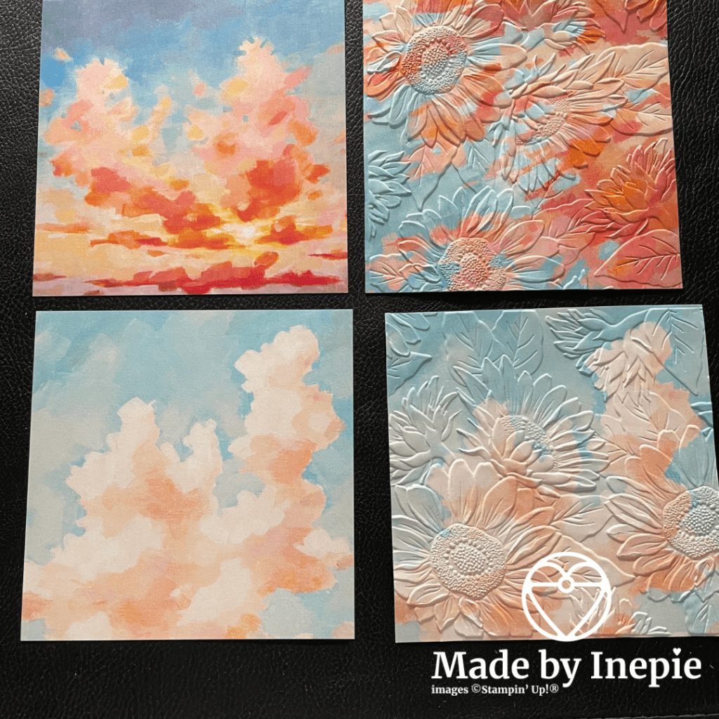 Zulke mooie kleuren: ik hou ervan, en zo magisch als je ze uit de Embossing folder haalt! Iedere keer een aangename verrassing.