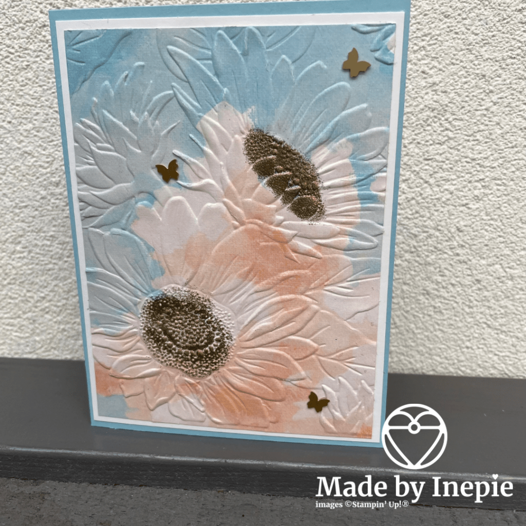 Ik kan er geen genoeg van krijgen: spelen met de 3D Sunflower Embossing folder. Kijk nu hoe mooi dit kaartje geworden is: