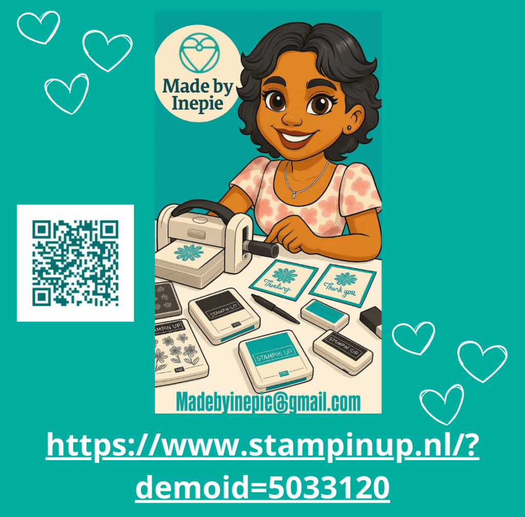 Wat ook nieuw is bij Stampin ’Up! maar dan alleen voor Demo’s is een tool waarmee we QR codes kunnen maken. Ik heb gekozen voor de kleur Pretty Peacock want die past perfect bij Bermuda Bay.