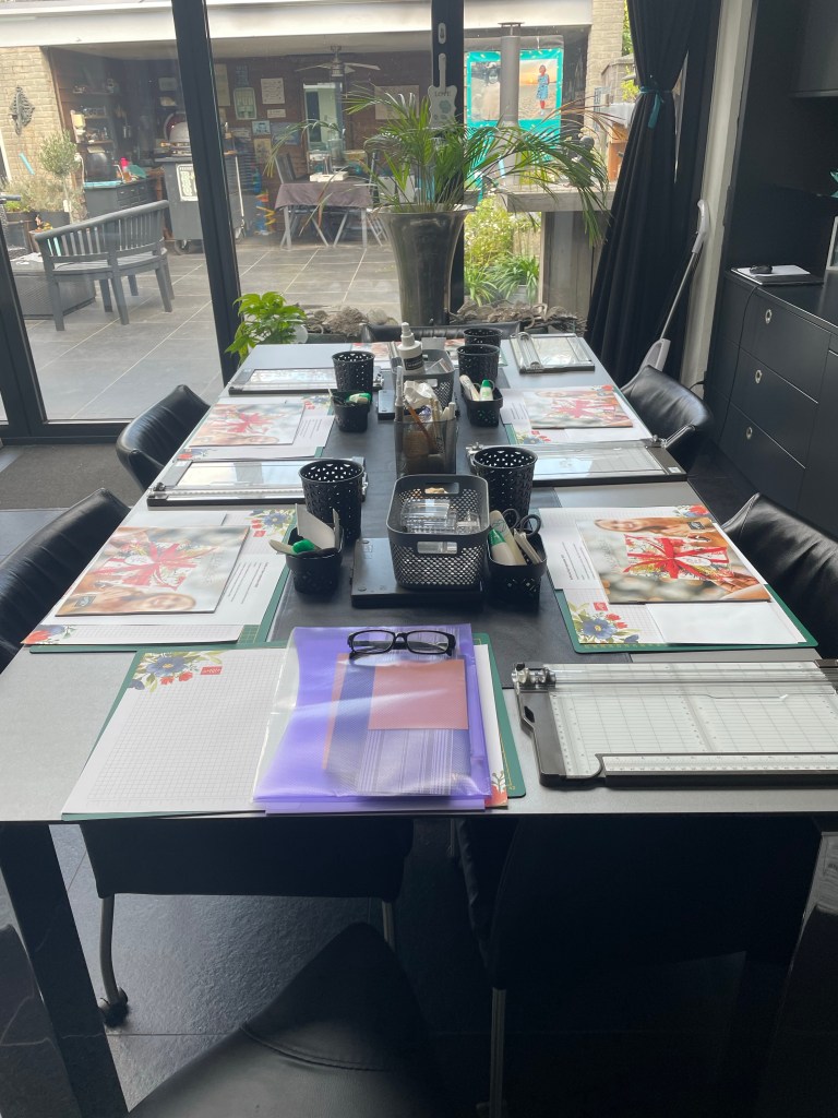 Vandaag zouden vijf dames gezellig aanschuiven. Twee dames zijn lekker op vakantie en helaas viel mijn zus toen ze naar mij wilde vertrekken en bleef ze thuis om even bij te komen: beterschap Gwen van mij en alle dames.