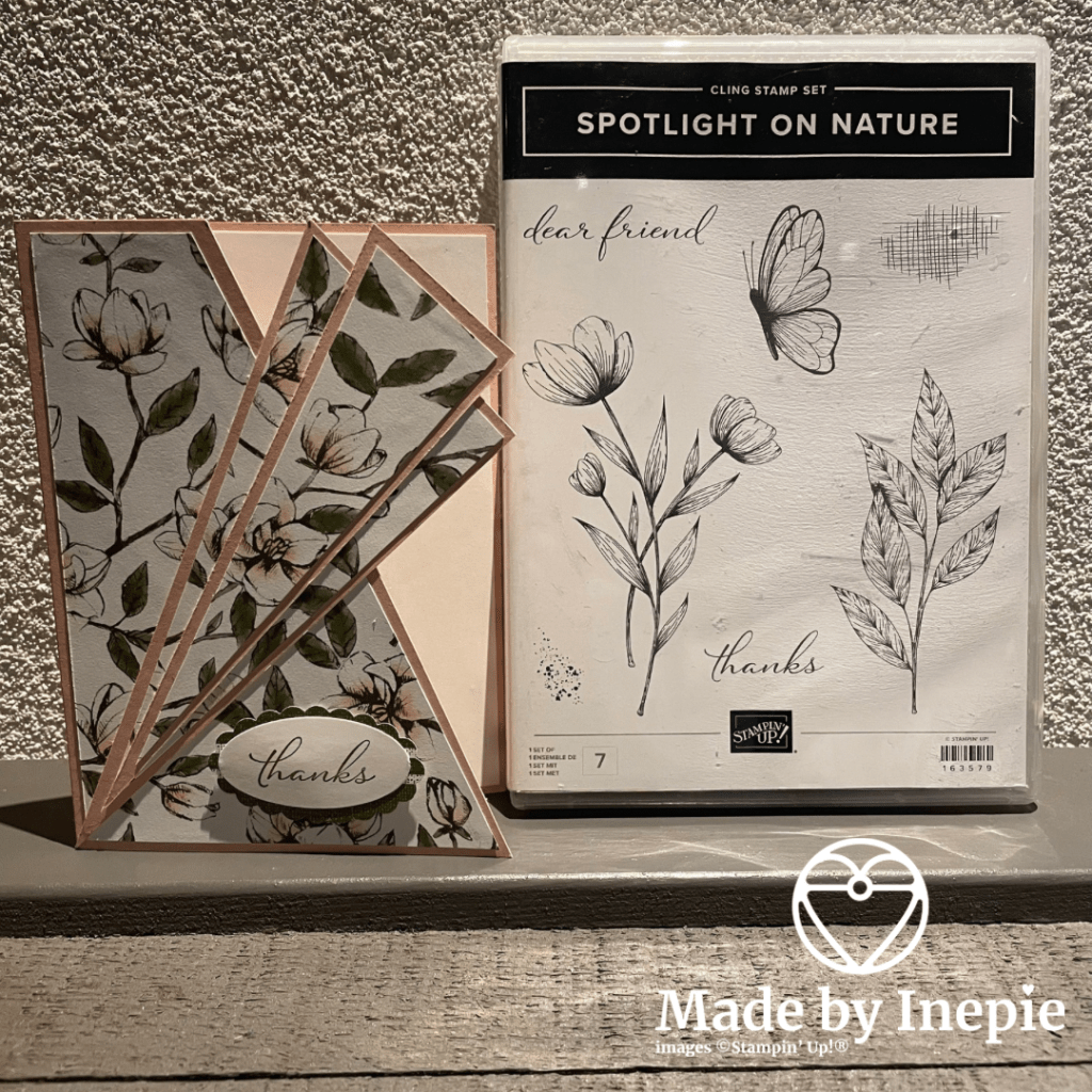 Dit papier was echt wel een favoriet van mij en fijn om het nu dus te gebruiken. En ik combineerde het met de mooie stempelset Spotlight on Nature.