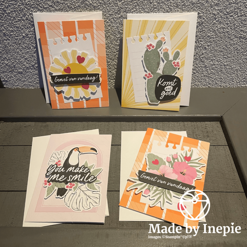 Vandaag was weer een druk dagje. Lekker op Koda en Lynn mogen passen maar was ook nog moe van het klusweekend en ben wat verkouden. Dus knutselen kwam er niet van. Daarom laat ik wat kaarten zien uit de geweldig leuke Share a Smile kit.