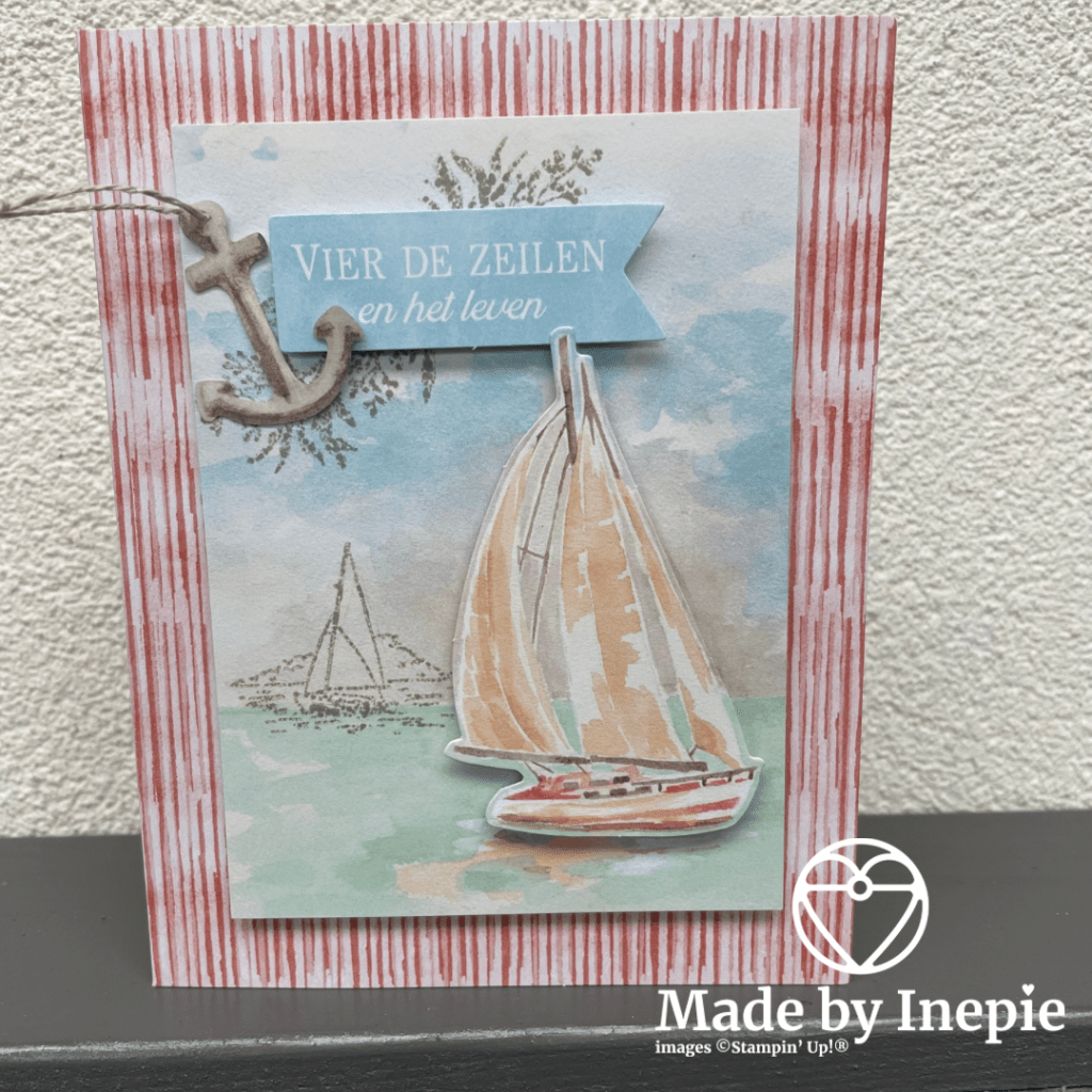 Een van de favoriete creatieve kits van mij op dit moment is Maritime Moments. Ik hou van de zee. Alhoewel ik zeeziek word vind ik het mooi om zeilboten op het water te zien. Mijn broer was de achtste jarig. En voor hem maakte ik dit kaartje: