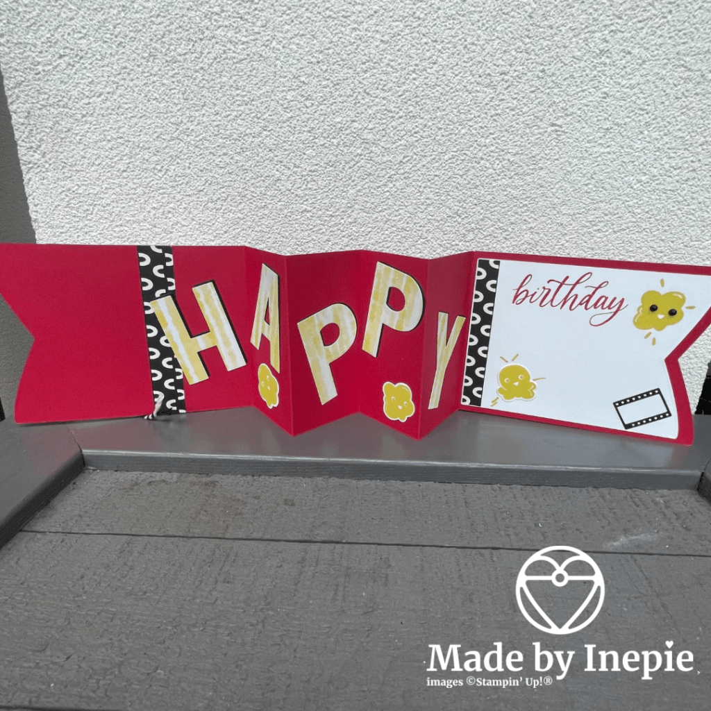 Dit is de binnenkant: echt een vrolijke verjaardagskaart. Stop er een bioscoop bon in of plan een filmdate en je hebt meteen een leuk cadeautje.