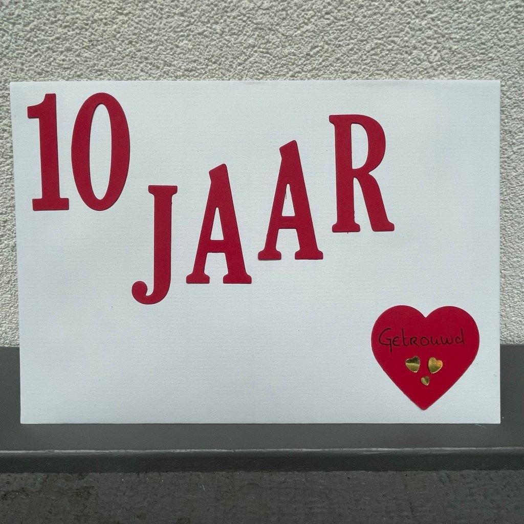 Mandy en Gert Jan waren de 15e tien jaar getrouwd. Daar wilde ik een mooie kaart voor maken. En ik had al een idee in mijn hoofd en hoe gaaf is het dan als het lukt en het er precies uitziet zoals ik bedacht en gehoopt had.