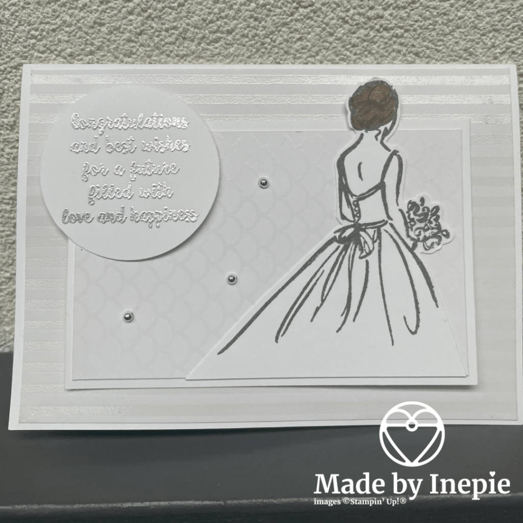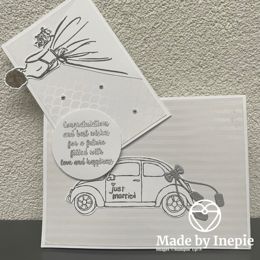 Toen het af was kreeg ik het verzoek van de vader van de bruid of ik ook voor hem een kaart kon maken. Tuurlijk! Maar we hebben niet zoveel trouwstenpels dus een retired set genomen. Ook erg tevreden mee: