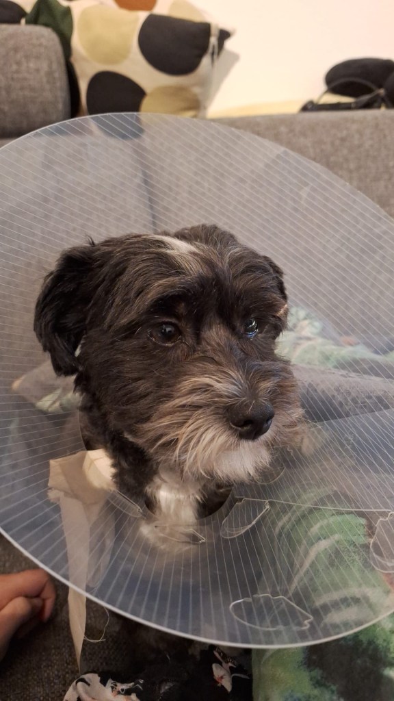 Die kap vond hij echt een drama en dus heeft hij nu een soort ziekenhuis pakje aan. Hopelijk heeft hij vannacht goed geslapen!