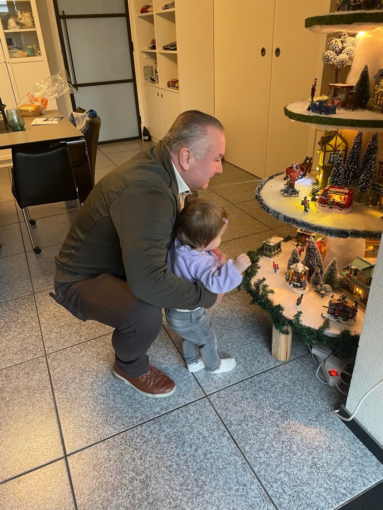 Ik weet nog dat vroeger Kerst versieren voor Sinterklaas weg was: not done was. Maar ja Kerst en Kaart zonder versieringen kan niet. Dus Willem mocht lekker aan de gang. Lynn vindt het helemaal geweldig al die lichtjes! En tot nu toe blijft ze er netjes van af!