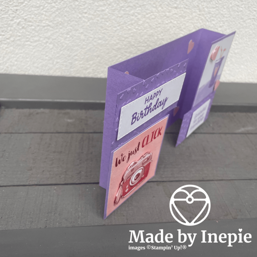 Deze funfold heet een Puzzle Slider card en zag ik bij Created the Ottaway. Maar ik heb zelf de maten aangepast omdat ik twee vierkante puzzel stukjes wilde. Het was even puzzelen haha maar het is supergoed gelukt! En Celine vond hem erg leuk en was er blij mee.