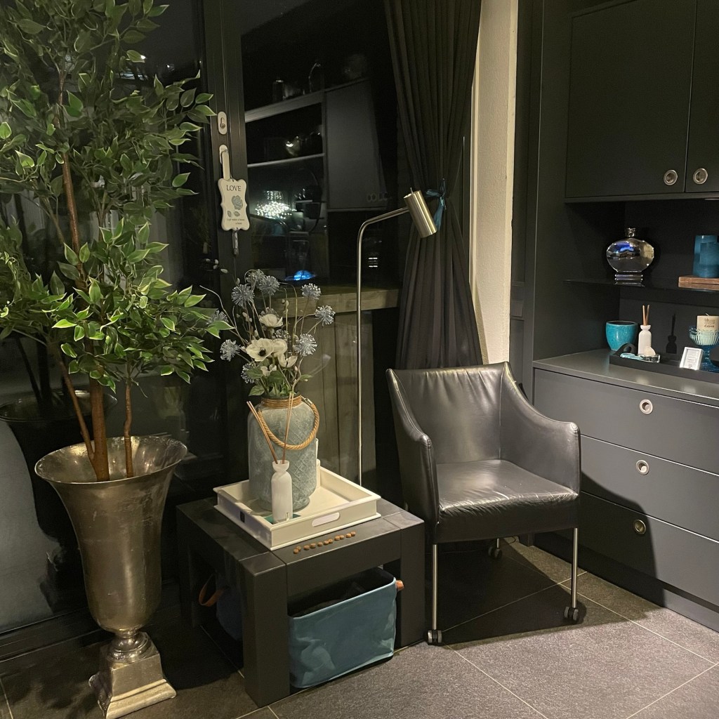 We waren op tijd bij ons mam en die wilde vroeg naar bed dus konden we op tijd naar huis. Ik wilde wat meubels weg hebben of verplaatst zodat ik nu een knus leesboekje heb gecreëerd. En ook fijn dat ik nu niet steeds op de grond hoef te zitten als ik ga voorlezen. De kerstboom eruit en een plant erin. Omdat deze wat groot uitviel de tafel die eronder stond naar zolder gedaan. En opeens viel bij mij het kwartje: en mijn leeshoek was geboren.
