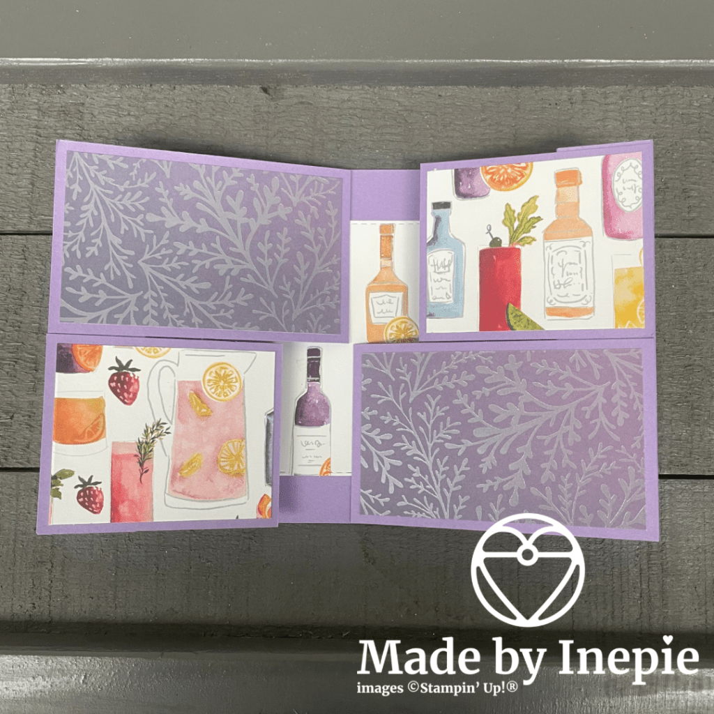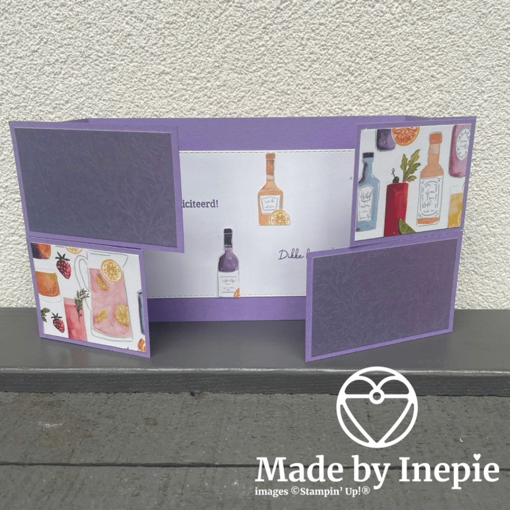 Hier hield ik dus teveel ruimte over. Bij het echte kaartje was er ruimte voor 1 klein hartje. Hier moest ik de flessen precies plaatsen, om de gaten op te vullen.