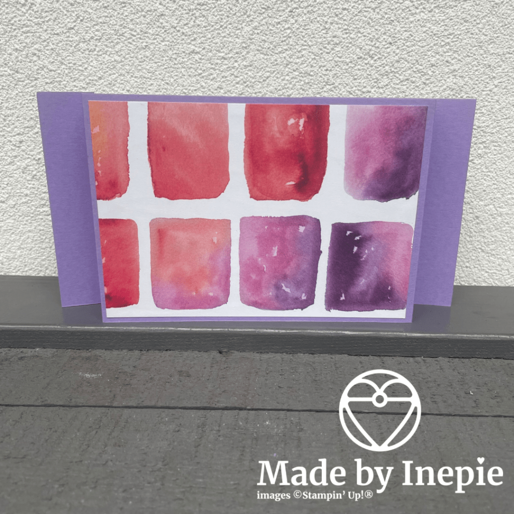 Op de foto is het moeilijk te zien maar het paars met de takjes, glanst al van zichzelf. Ik kijk eerst voor wie deze kaart wordt, want voor een man vind ik de kaart af. Voor een vrouw moet er nog iets bij denk ik. Maar dik tevreden ook over dit kaartje.