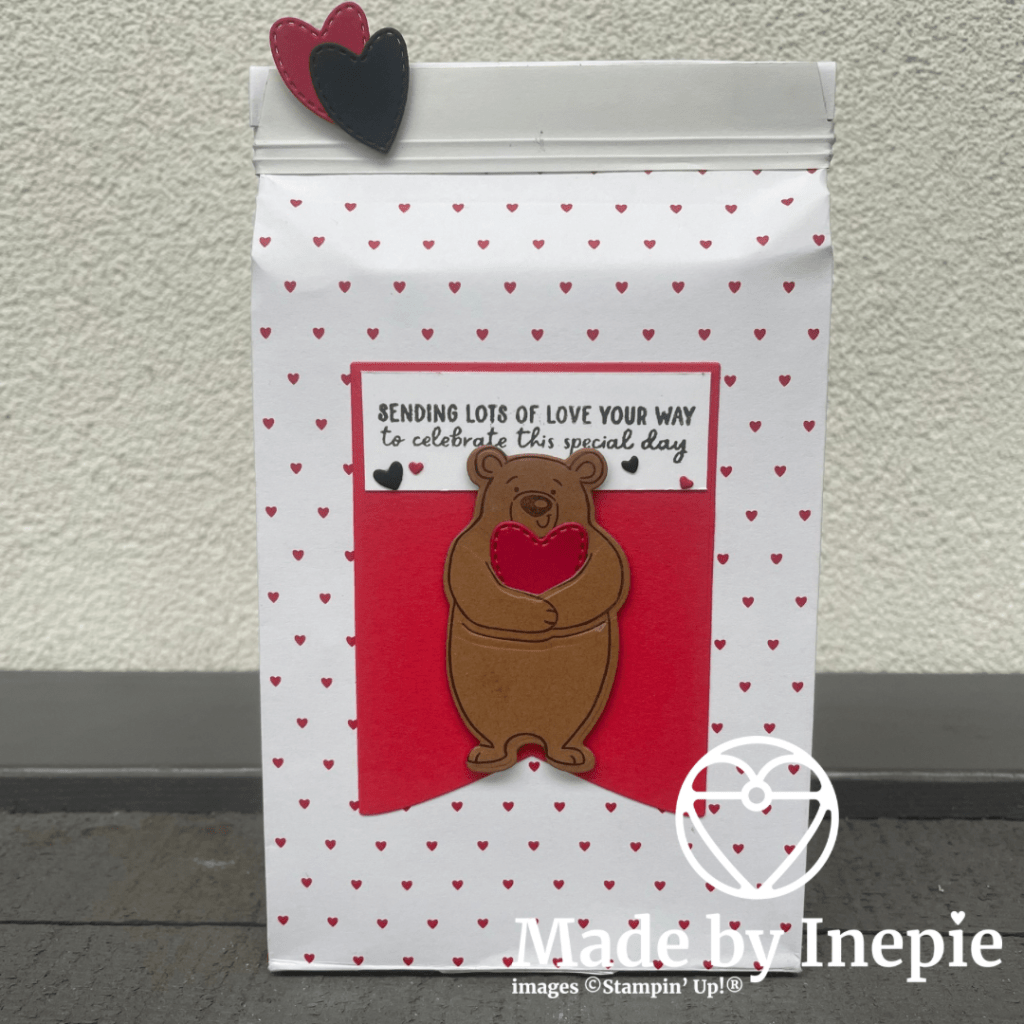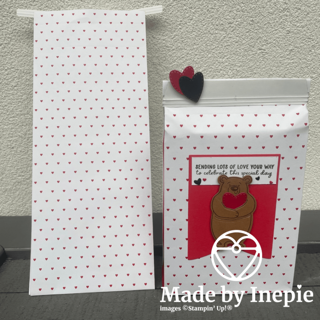 Zoals beloofd laat ik hier nu de cadeau verpakking zien die ik gemaakt had voor Michael. Het is gemaakt met de leuke hartjes cadeau zakjes.