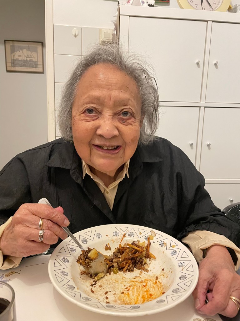 Mama genoot van onze komst en het eten: een vol bord indisch eten opgegeten. Zo fijn om haar te zien smullen. Was weer een fijne avond. Maar dus inderdaad geen tijd om te knutselen. Prioriteiten stellen heet dat.