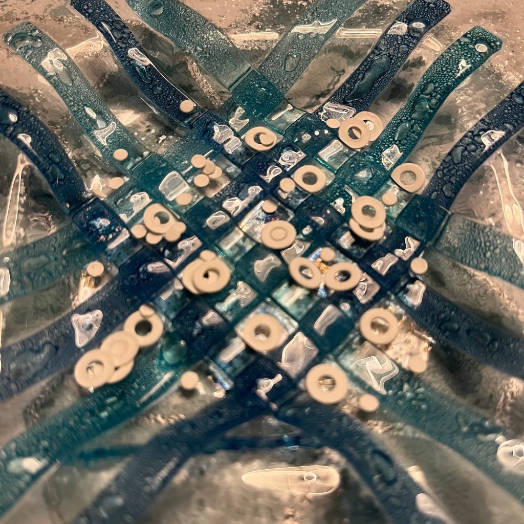 Bakers Twine door de gaatjes en gauw naar Hans gegaan en de slinger opgehangen. De foto die ik gemaakt heb is helaas wat donker. Maar ze was er erg blij mee toen ze het vandaag zag. Ik zal proberen een betere te nemen.